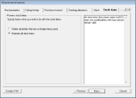 For this example, we will assume that the wizard was started up on 1 August and that the start date for the season has been set at 1 July. In the month of July, all the sales orders were booked and delivered. When following the instructions of the wizard, you can choose to retain sales orders with a delivery date after 1 July. If the wizard is now completed, sales lines that were booked after 1 July, but that have been completely delivered, WILL BE DELETED. If all the sales lines have been delivered, therefore, all the lines will be deleted. And an empty sales order will also be deleted.