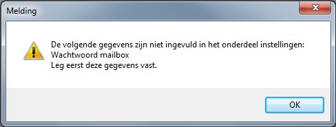 4- Met de button Volgende worden de gegevens ingelezen. Als bepaalde gegevens niet zijn ingevuld verschijnt onderstaand bericht.